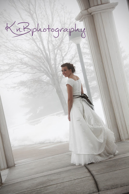 This wonderful wedding took place at the Bountiful LDS Temple. However... you may not recognize the temple quite so well in the picture below. This was the beautifully foggy day that Kathy and Tom were married. It made for some great romantic photos! And definitely added a twist to the day. Congratulations!!
